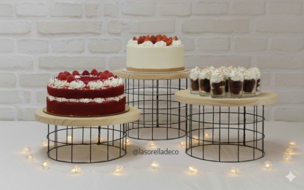 Apoyo: 30 cm de diámetro. Madera de pino color natural protegida con laca.