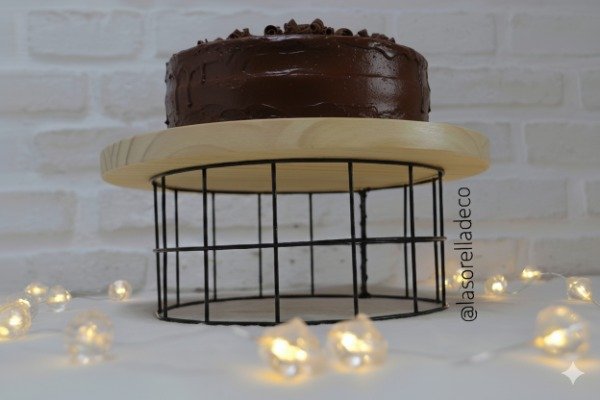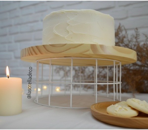 Apoyo: 30 cm de diámetro. Madera de pino color natural protegida con laca.